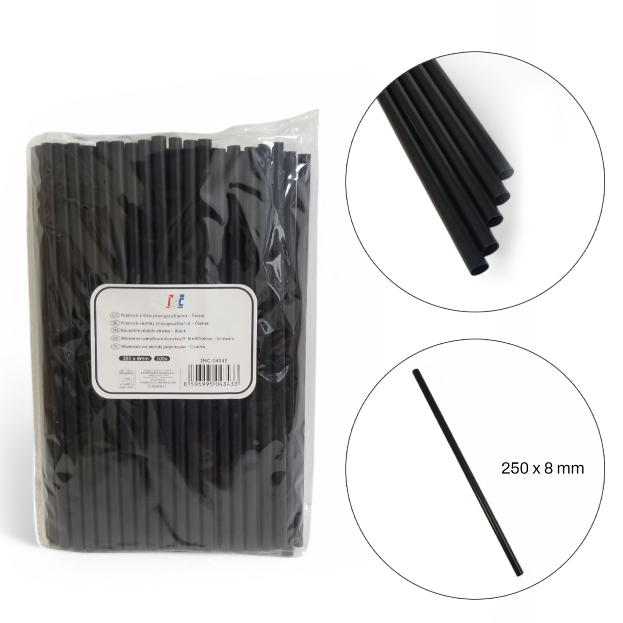 Brčka plastová znovupoužitelná Černá 250x8mm 100ks IMC-04343