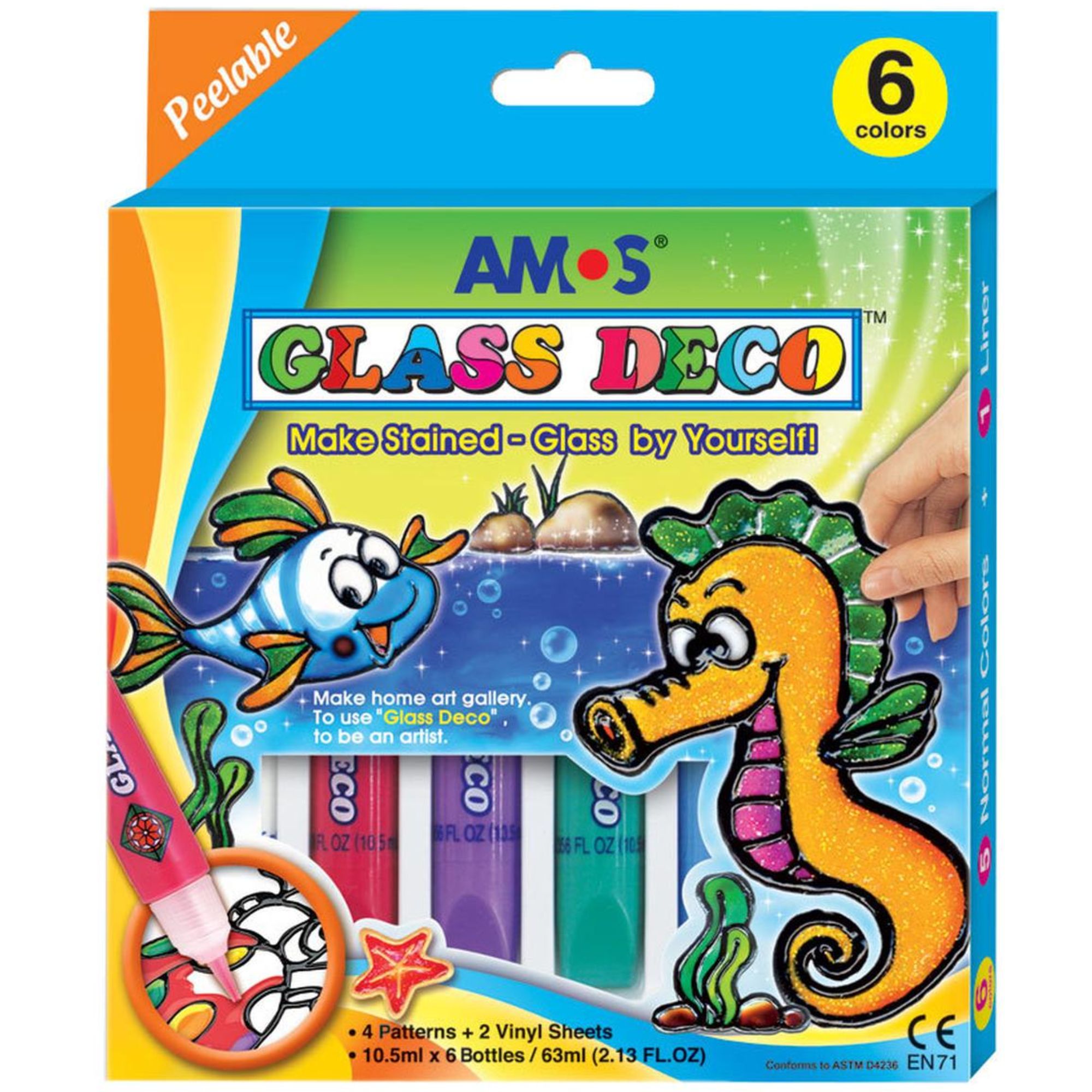 Amos barvičky na sklo sada (4 šablony + 2 fólie + 6 barev)