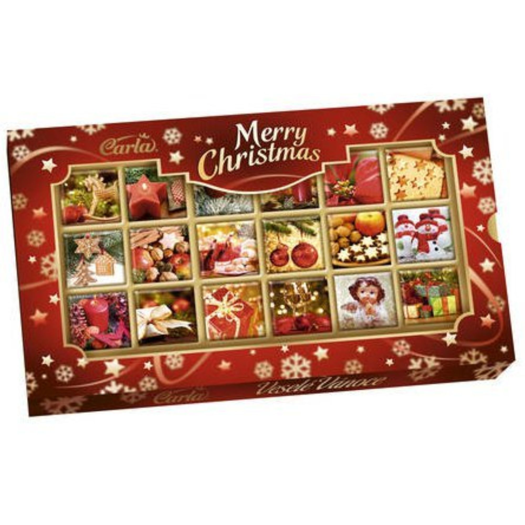• detail Carla Veselé Vánoce - neapolitánky mléčné 90g bonboniéra