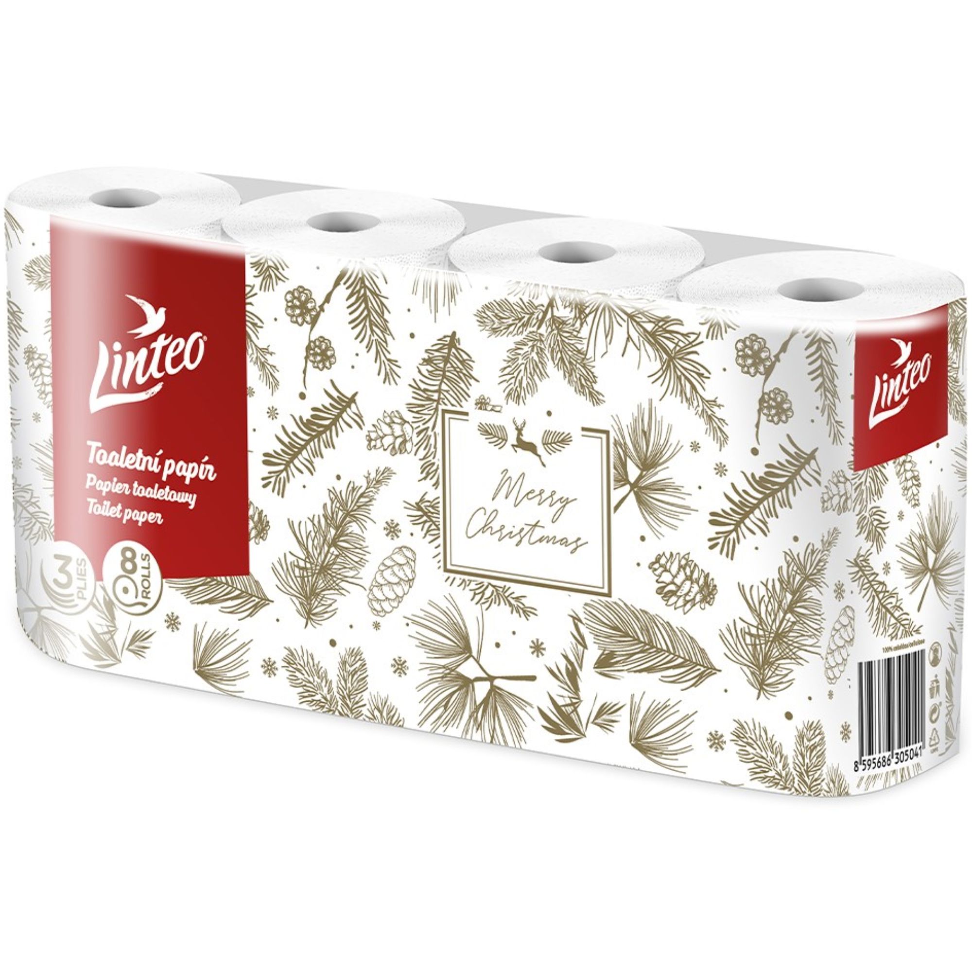 • náhled Linteo toaletní papír 3vrstvý 8rolí 15m bílý VÁNOČNÍ (bal/10ks)