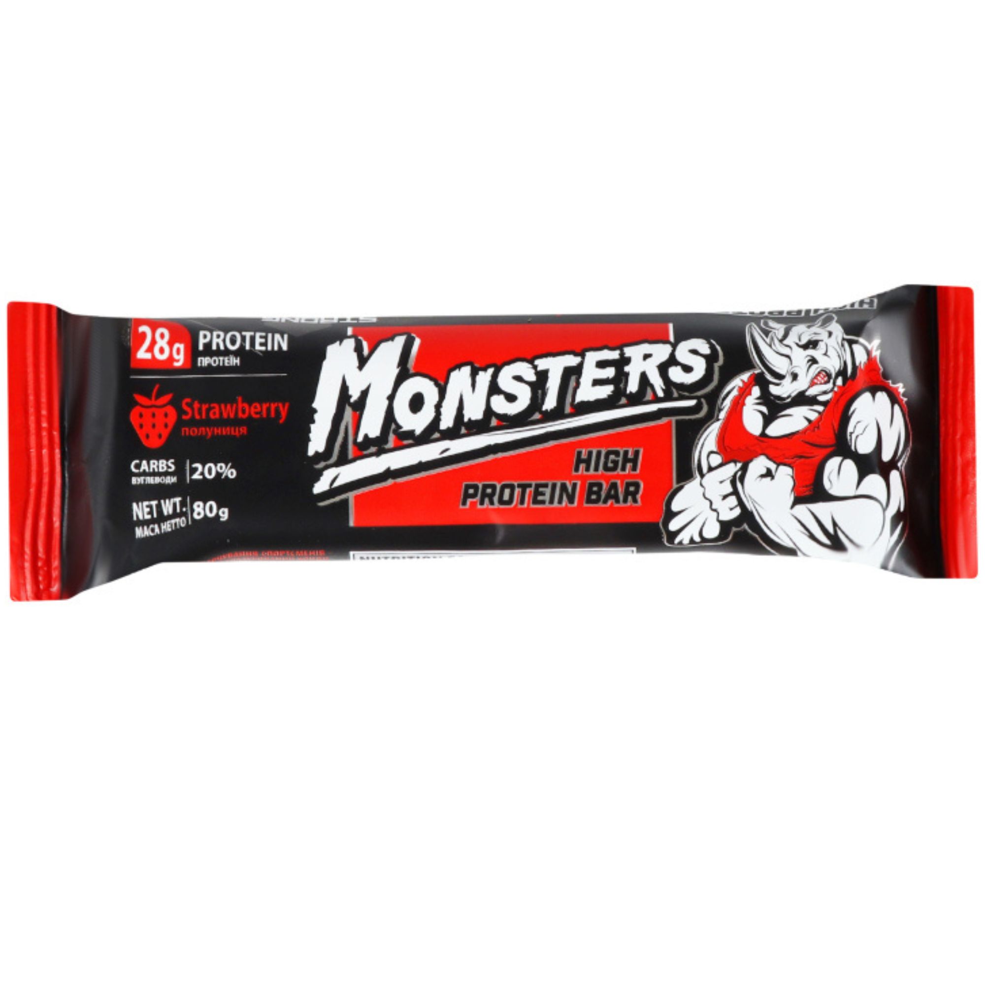 Monsters proteinová tyčinka 80g - Jahody (20)