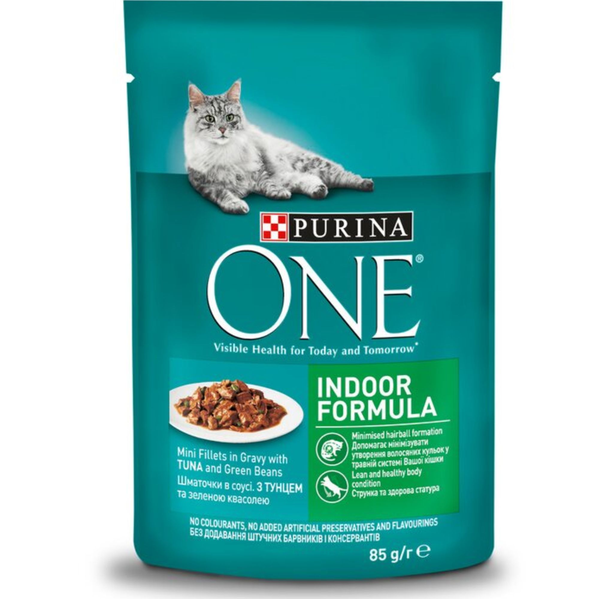 • detail Purina One kapsička 85g INDOOR tuňák a zelené fazolky (24)