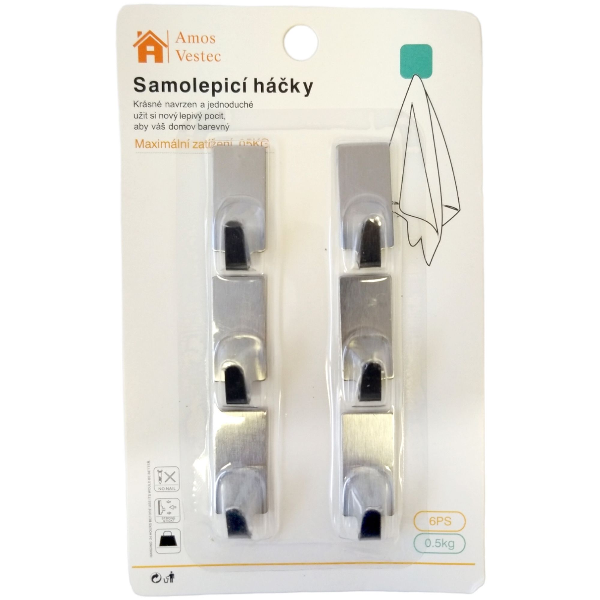 Sada nerezové samolepicí háčky 6ks ITEM: B1790 (bal/12ks)